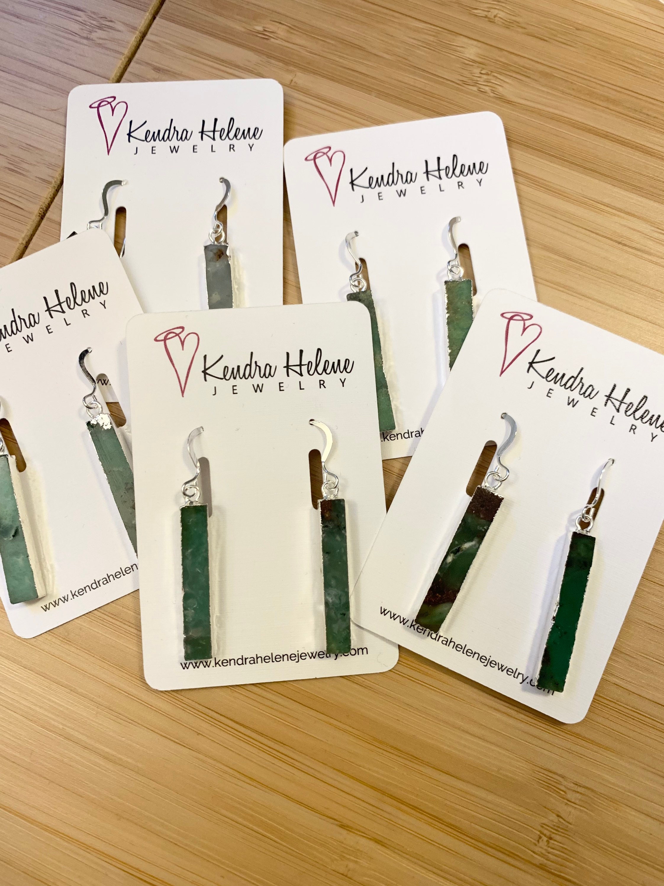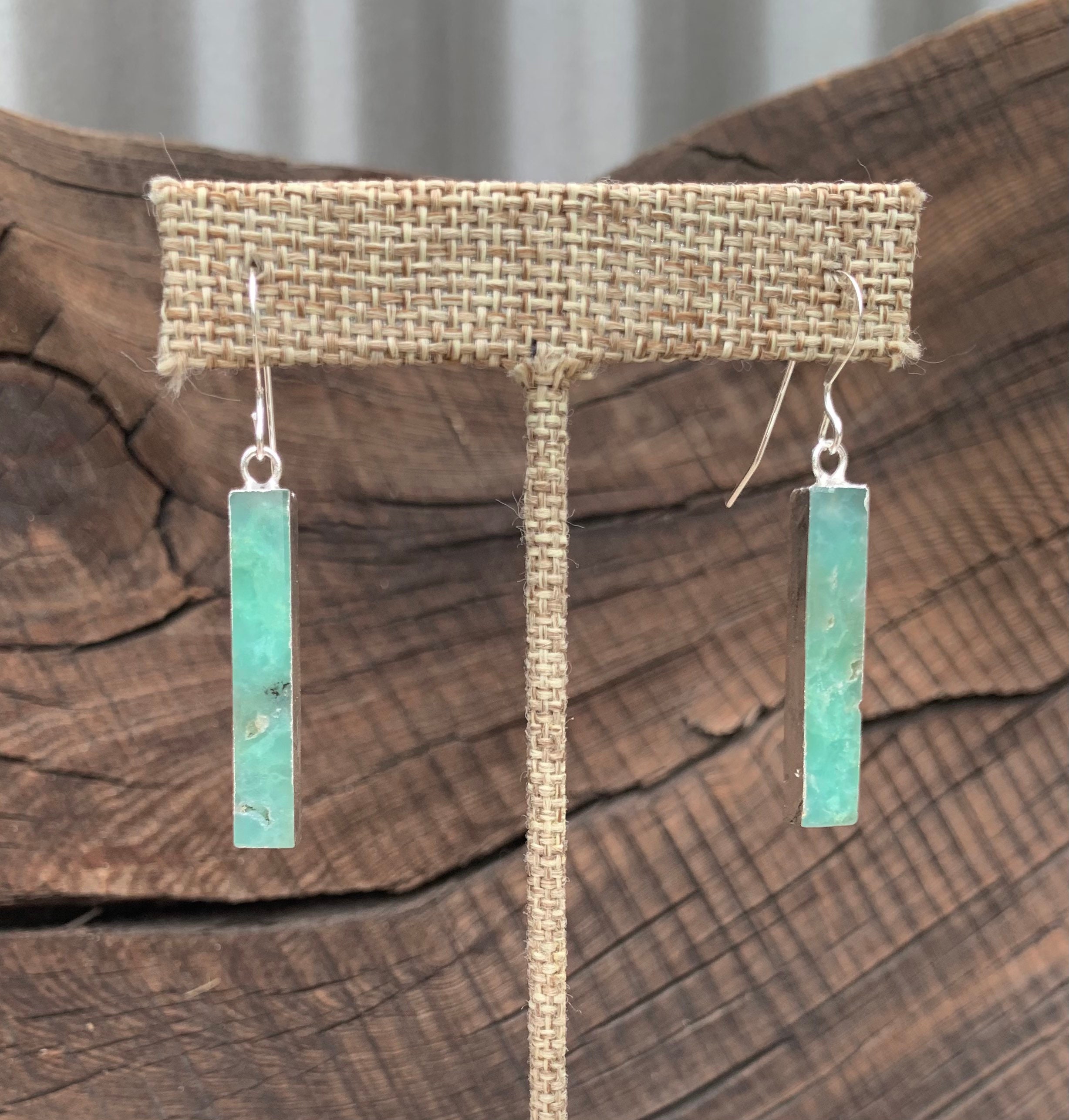 * beautiful chrysoprase gemstone rectangles wrapped in plated silver